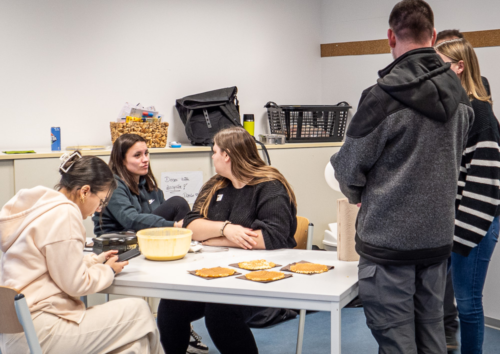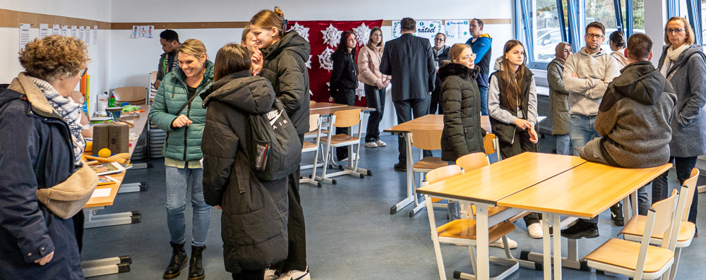 Viele Schüler:innen, die dieses Jahr ihre Ausbildung beenden, fragen sich, welche Ausbildung für sie die richtige ist. Und um die dabei entstehenden Fragen persönlich zu beantworten, haben wir auch dieses Jahr wieder unseren Informationsnachmittag angeboten. Wieder einmal hatten wir großen Andrang in allen vier Ausbildungsgängen. Einige wollten sich nur die Schule ansehen, aber viele kamen auch mit ganz konkreten Fragen. Auch für das leibliche Wohl war gesorgt und der Waffelduft kroch lecker durch das ganze Stockwerk.