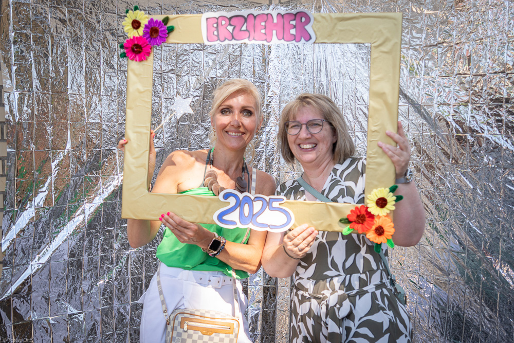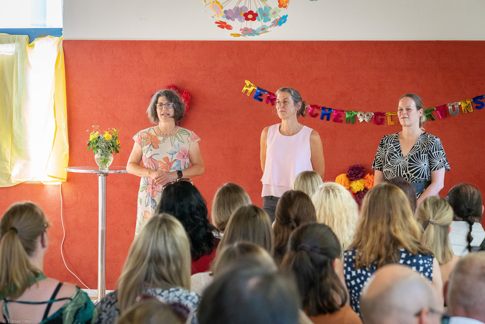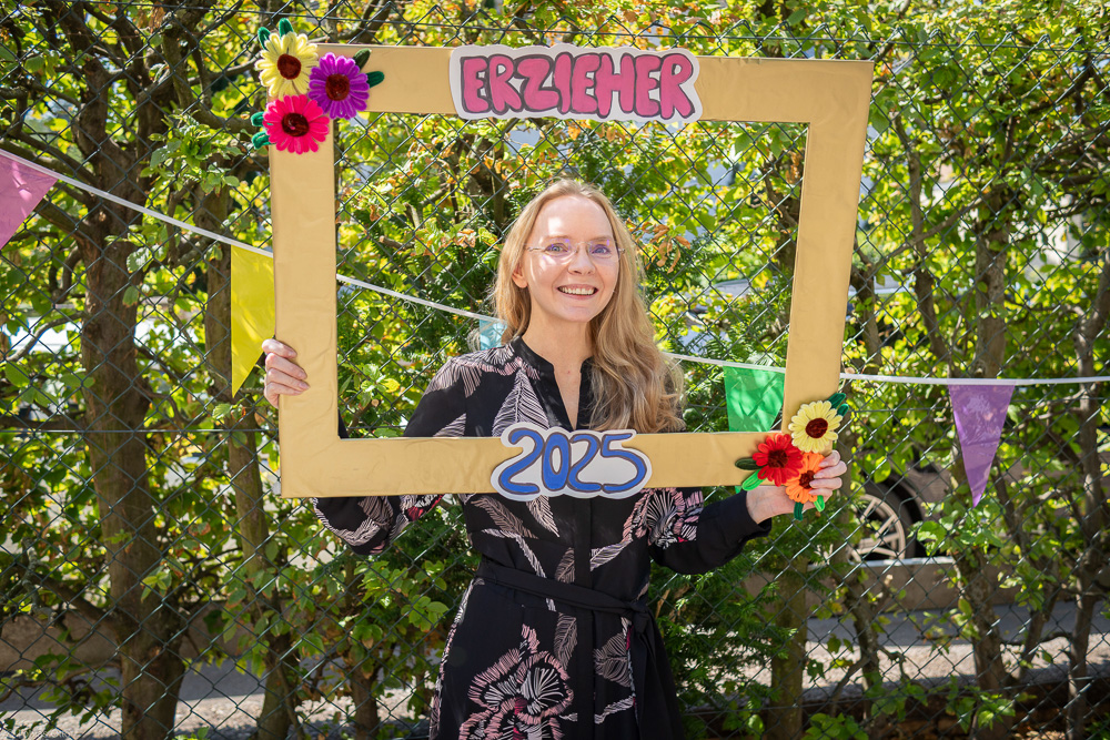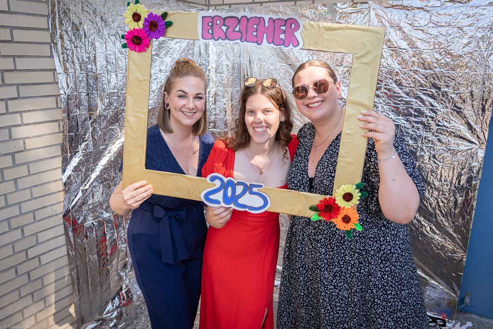 Traditionell bilden die Erzieher:innen den Auftakt unserer drei Abschiedstage, Dienstag, Mittwoch und Donnerstag der letzten Schulwoche. Dieses Jahr haben wir gleich drei Klassen Erzieher:innen ausgebildet und lassen sie auf den Arbeitsmarkt los, eine Vollzeit- und zwei berufsbegleitende Klassen. Das gab natürlich ein rauschendes Fest mit den Schüler:innen und ihren Familien, Partner:innen und Freund:innen. Aber so stolz wir auch auf alle unsere Absolvent:innen sind, so werden sie uns doch ein wenig fehlen. Wir wünschen allen einen guten Start ins Berufsleben.