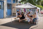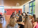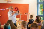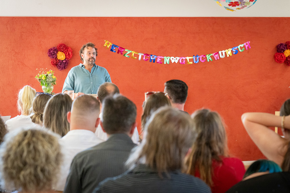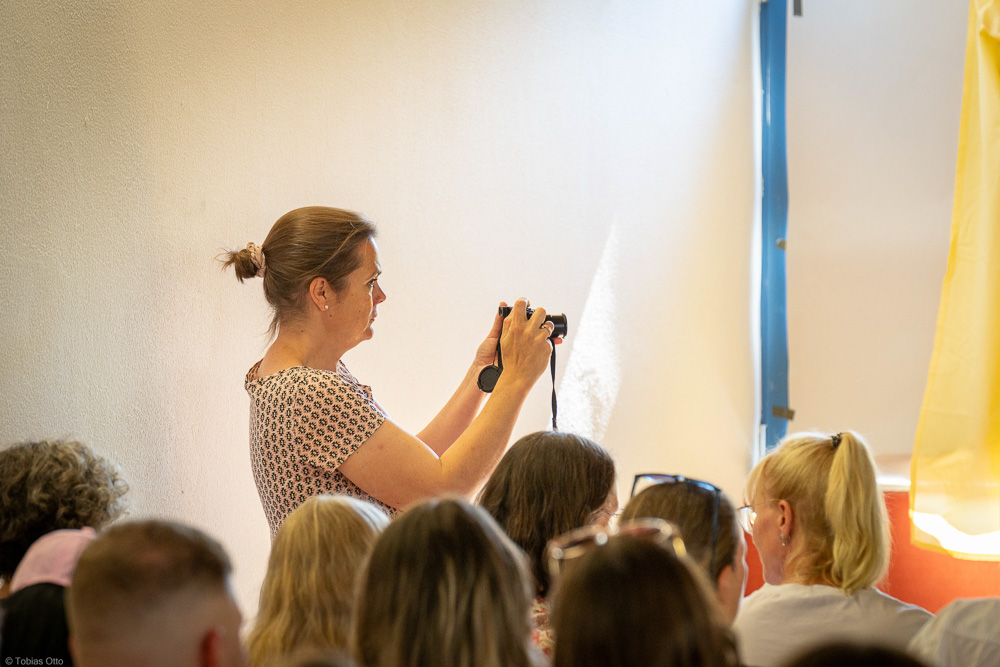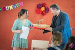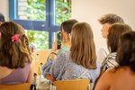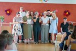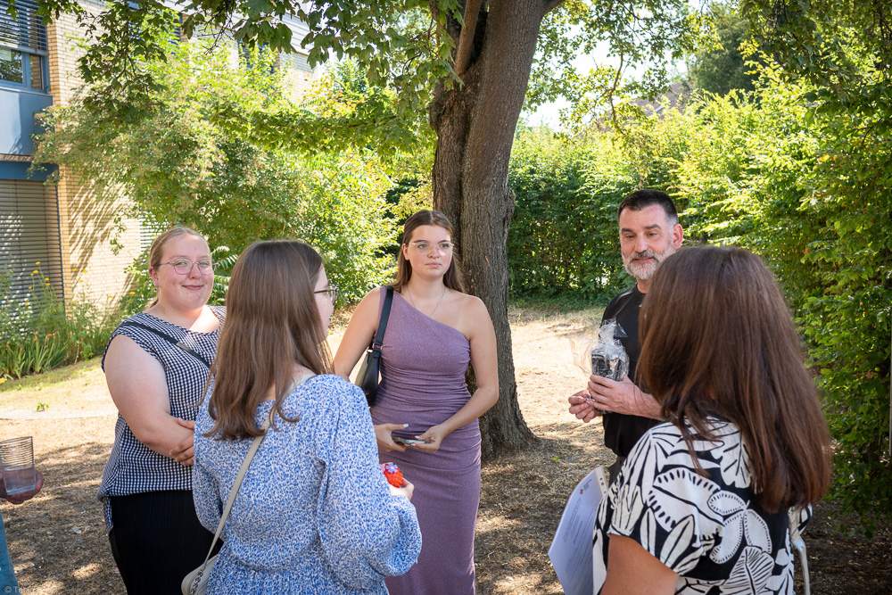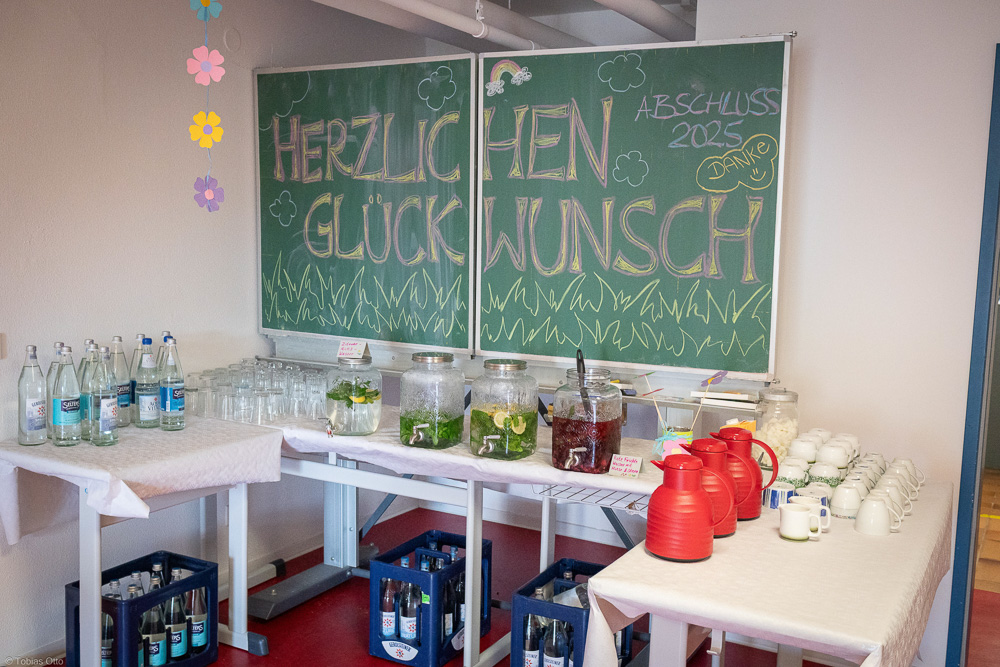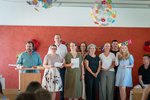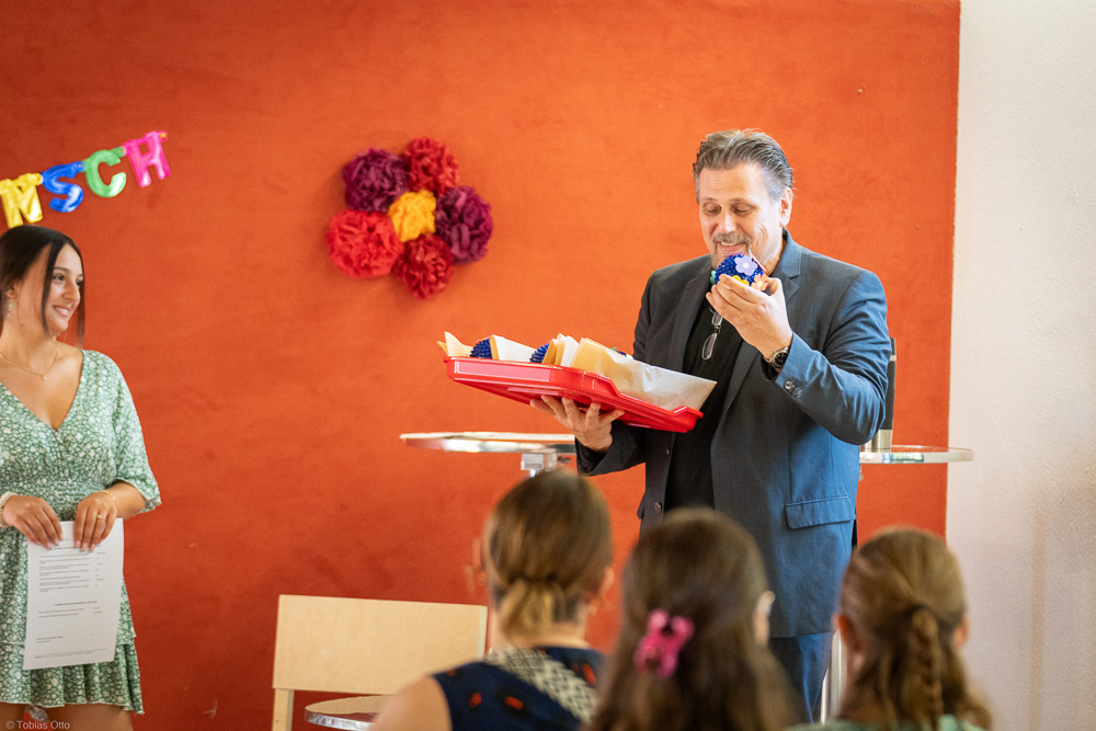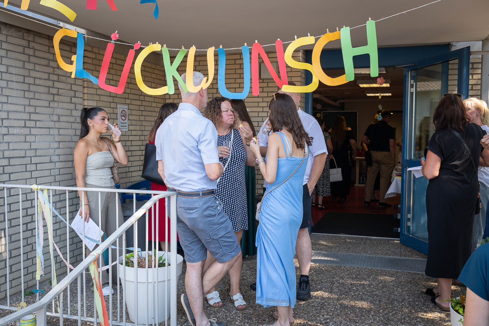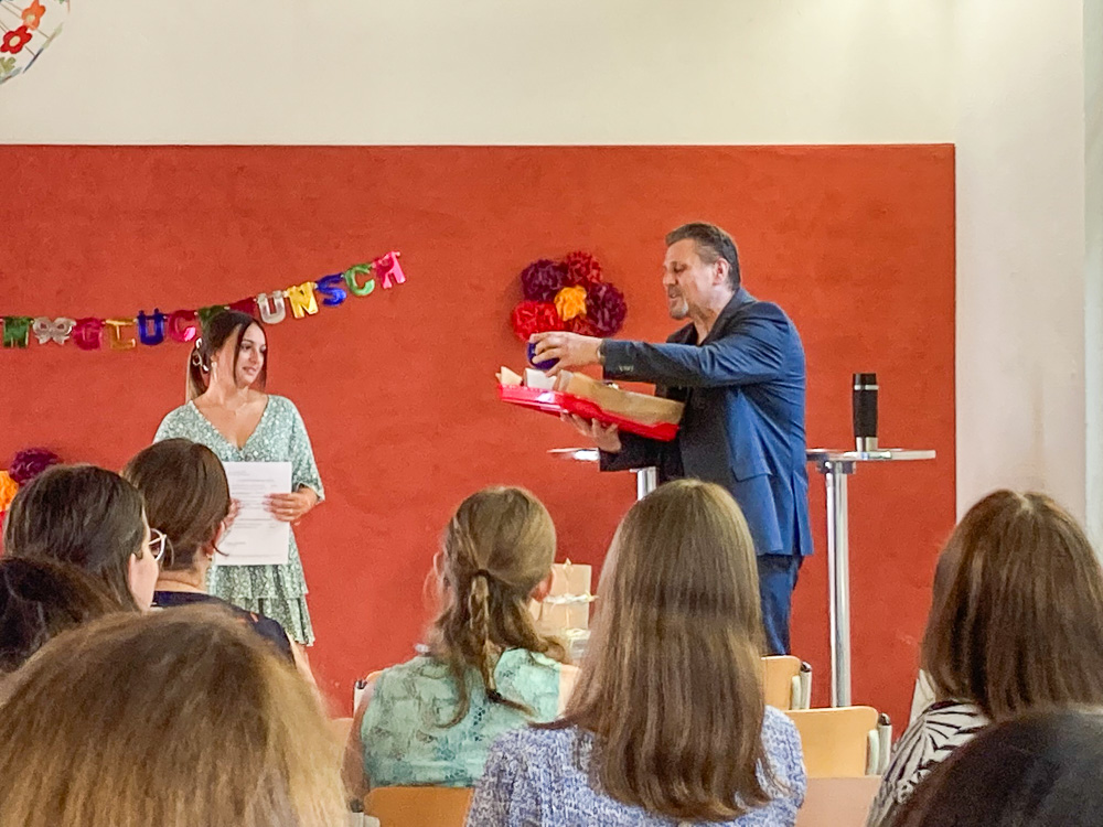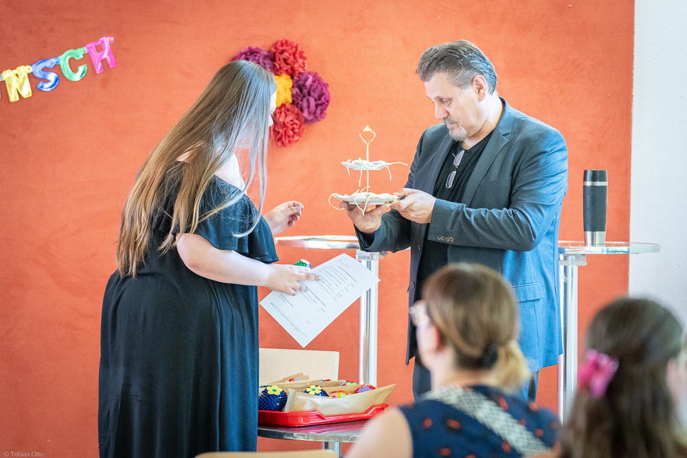 Bei den Sozialassistent:innen gab es dieses Jahr nur eine Abschlussklasse, die im Laufe der beiden Jahre aus den unterschiedlichsten Gründen auch deutlich kleiner geworden ist. Aber sechzehn Schüler:innen hielten durch und schafften ihren wohlverdienten Abschluss. Und einen großen Teil von ihnen dürfen wir im nächsten Schuljahr wieder bei uns begrüßen, wenn sie ausgeruht, mit Schwung und Elan in die Erzieher:innen-Ausbildung starten. Aber an diesem Mittwoch ließen sie sich erst einmal feiern und feierten selbst kräftig mit.