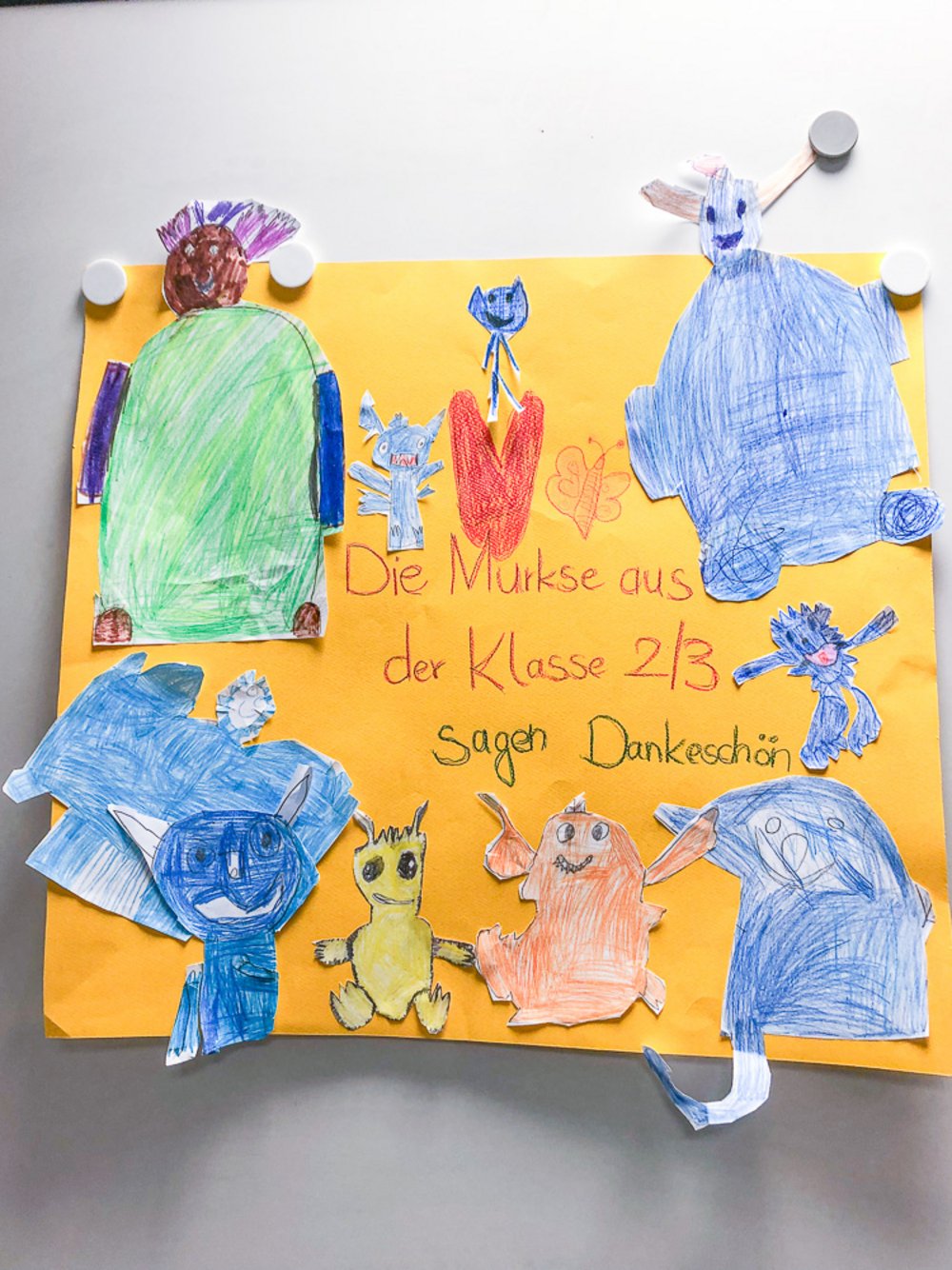 Beim Vorlesen wurden zum Teil auch die schuleigenen Kamishibais benutzt. Das sind kleine Theater, in die Bildkarten eingesteckt werden können, um das Vorlesen visuell zu unterstützen.