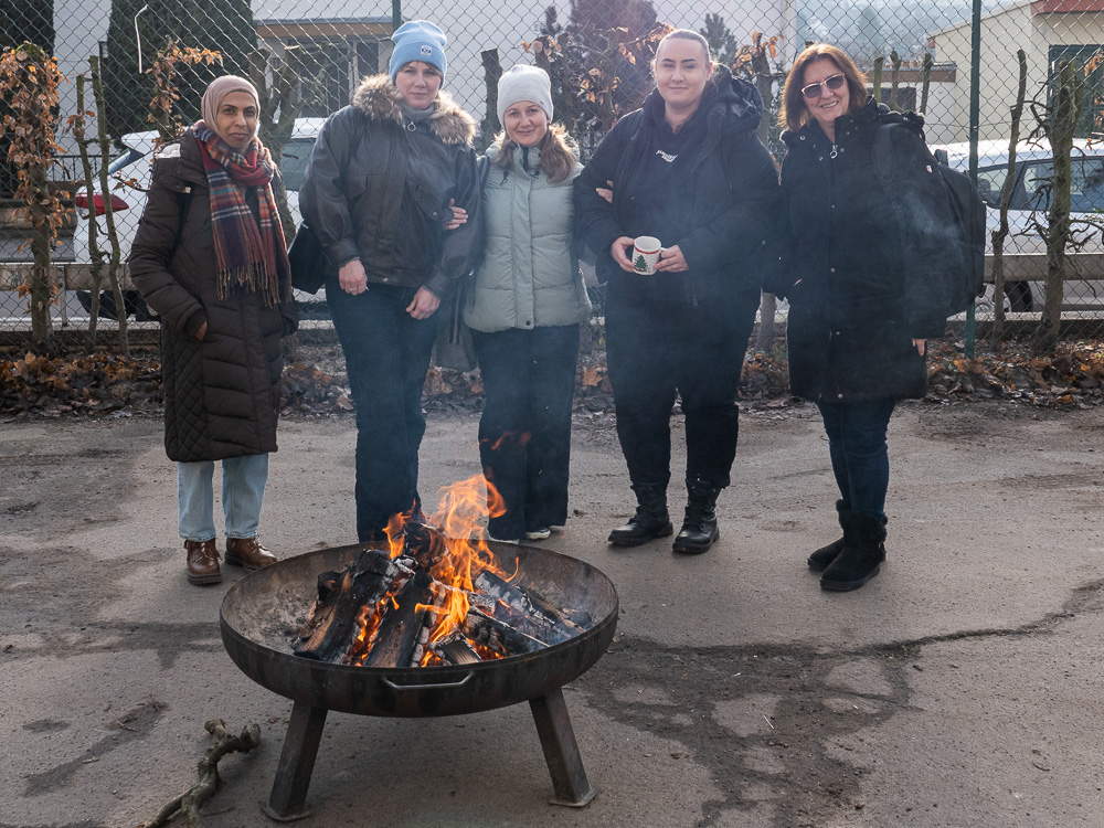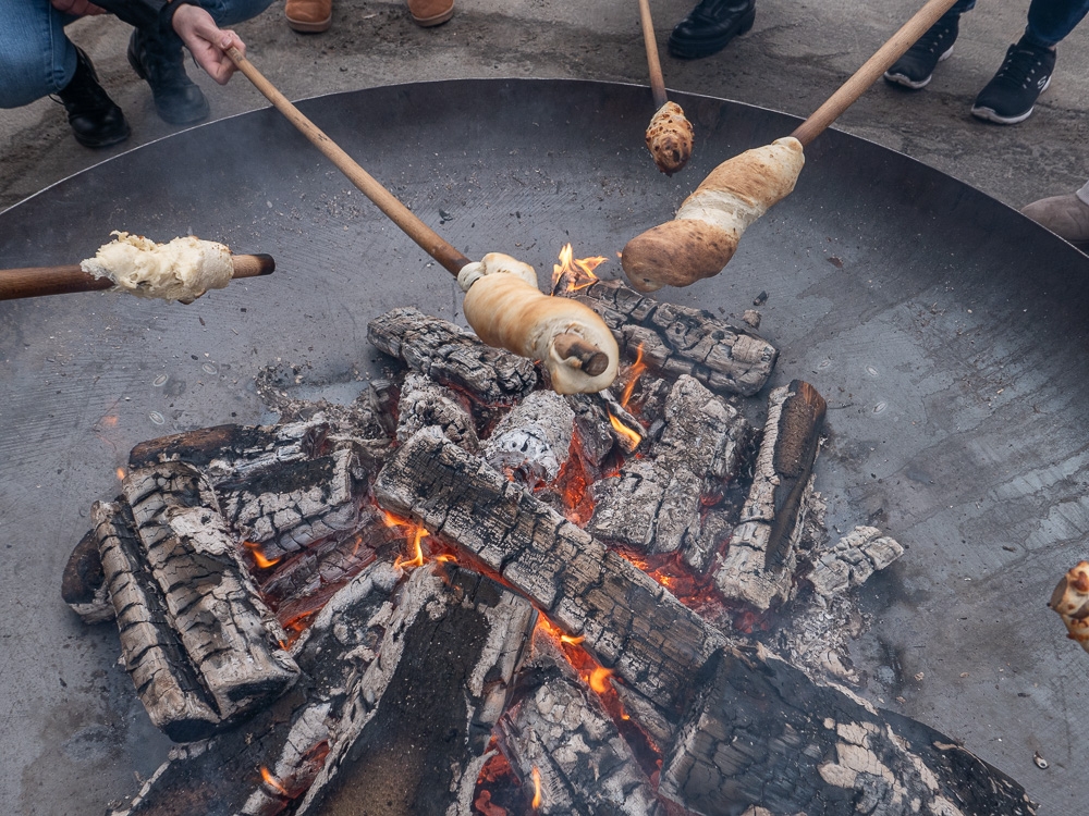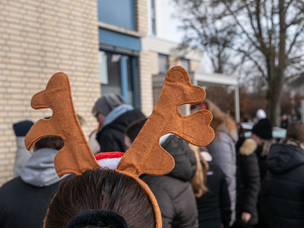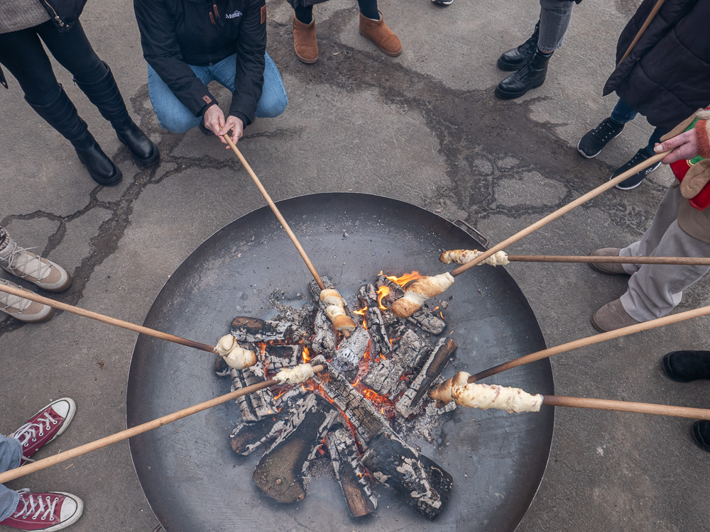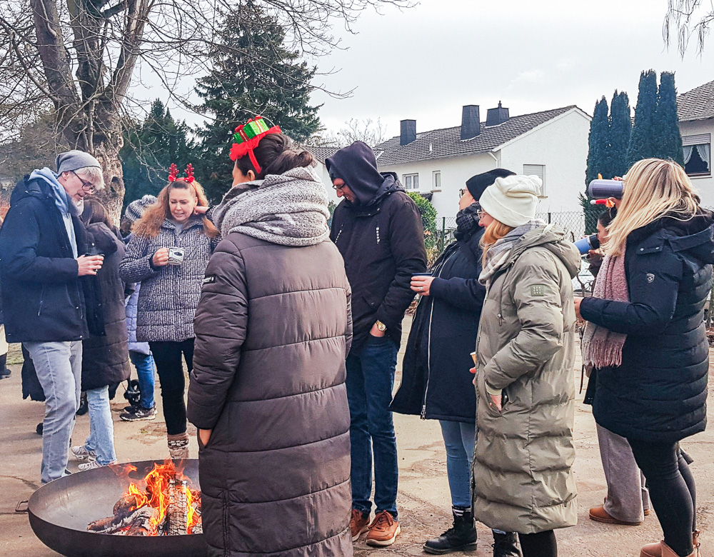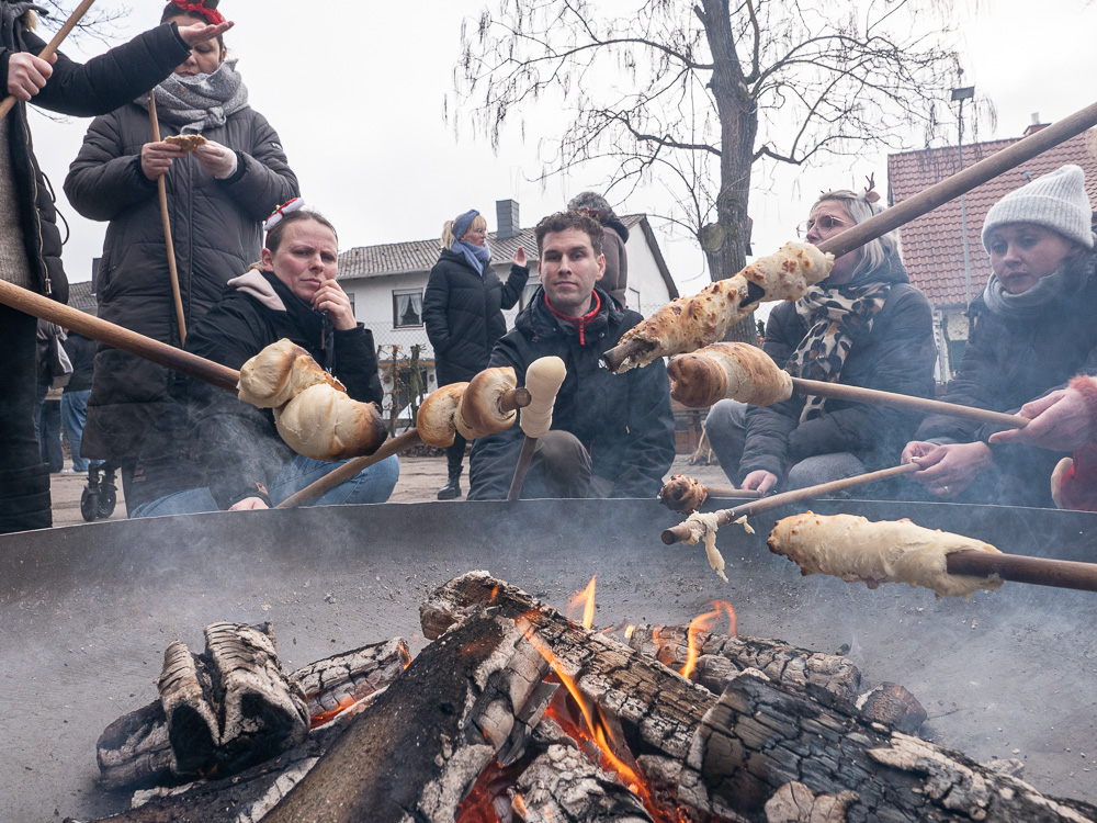 Ein Schwerpunkt unserer Schule ist die Erlebnispädagogik, was sich dieses Jahr auch bei den Weihnachtsfeiern zeigte. Draußen im Hof wurden zwei große Feuerschalen mit Brennholz bestückt. Das sah nicht nur schön aus und vermittelte ein angenehmes Flair. Es half auch gegen die vorweihnachtliche Kälte und ermöglichte unseren Schüler:innen und Lehrkräften das Erlebnis, Stockbrot selbst zuzubereiten.