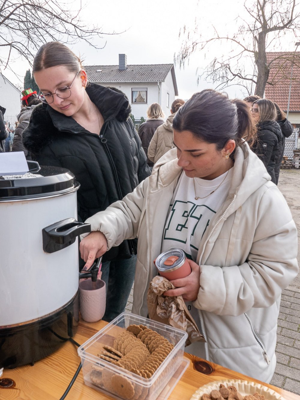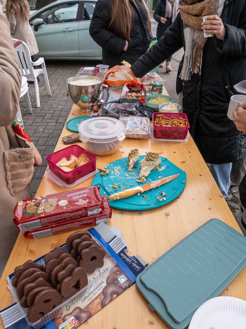 Von der Schule gab es außerdem noch alkoholfreien Punsch. Und ohne Absprache brachten viele Schüler:innen noch etwas Süßes oder Herzhaftes mit, um die Weihnachtsfeier noch schöner und nahrhafter zu gestalten.
