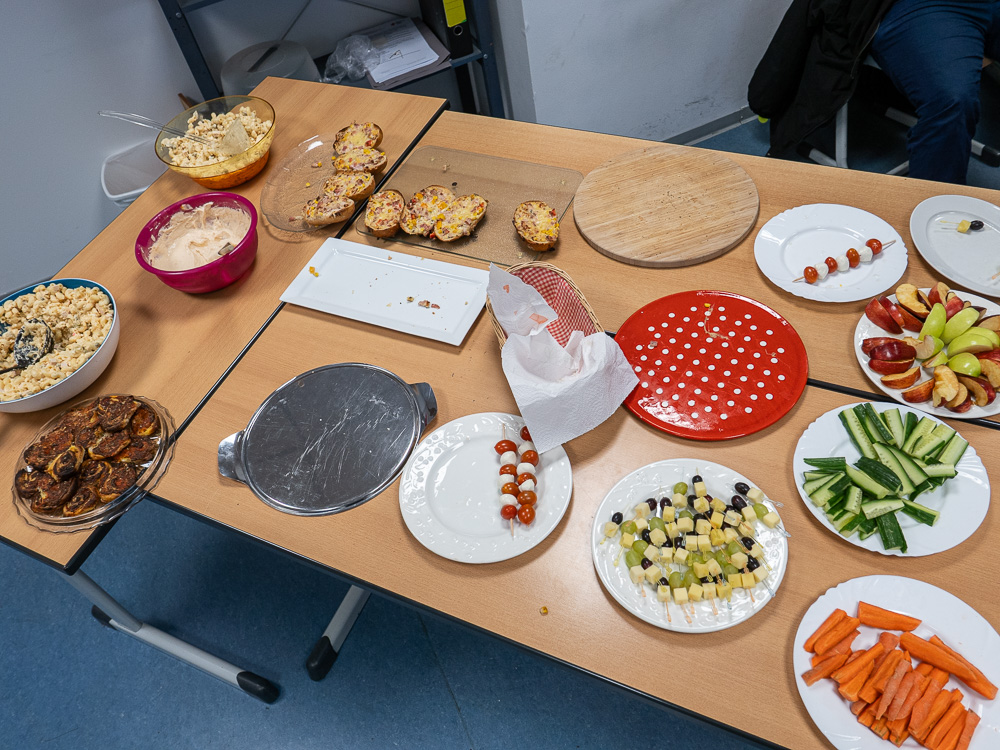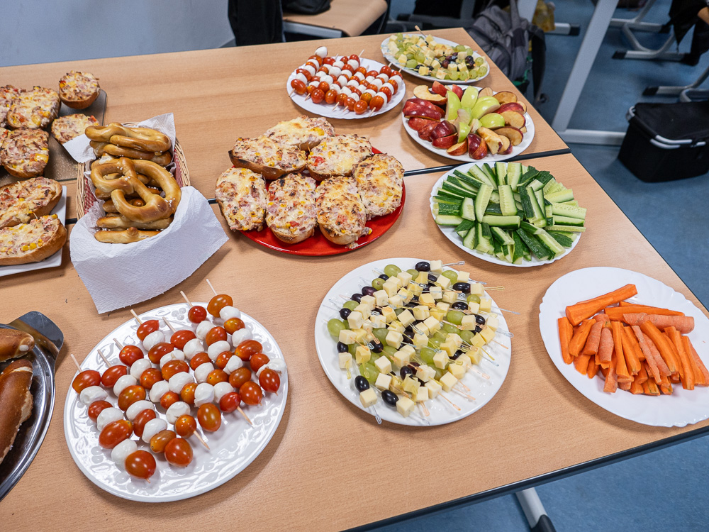 In der Ausbildung der Sozialassistent:innen befasst sich das Lernfeld 6 mit den unterschiedlichsten Aspekten des Themenfelds Ernährung. Dazu gehören sowohl die Grundlagen der Ernährung, gesunde Ernährung, Ernährungsbildung in der Kita aber auch die Planung von Essen bei kleinen oder großen Veranstaltungen. In das letzte Themengebiet ist die HBF25 dieses Jahr mit einer praktischen Aufgabe eingestiegen: ohne Vorwissen ein Weihnachts-Brunch für die Klasse organisieren. Das Ergebnis war sowohl lecker als auch deutlich zu viel. So können wir im neuen Jahr Themen wie Mengen- und Zeitplanung am konkreten Beispiel nachvollziehen.
