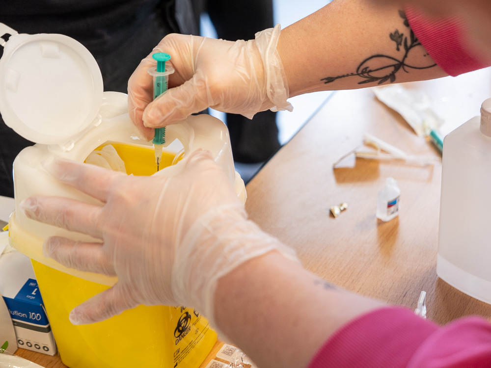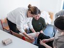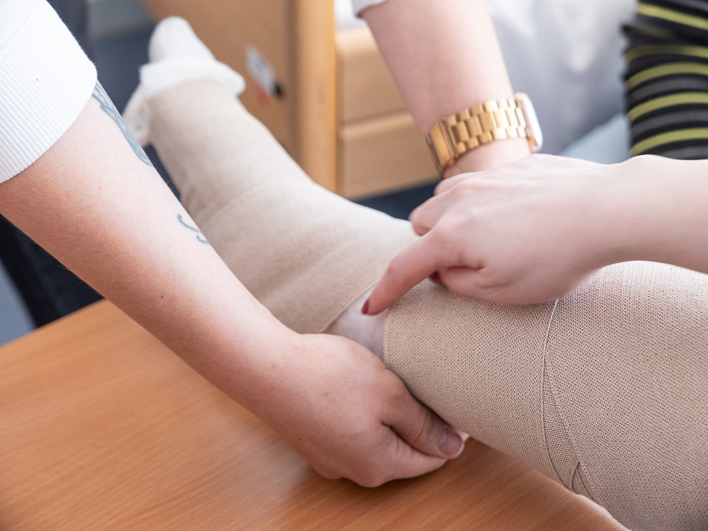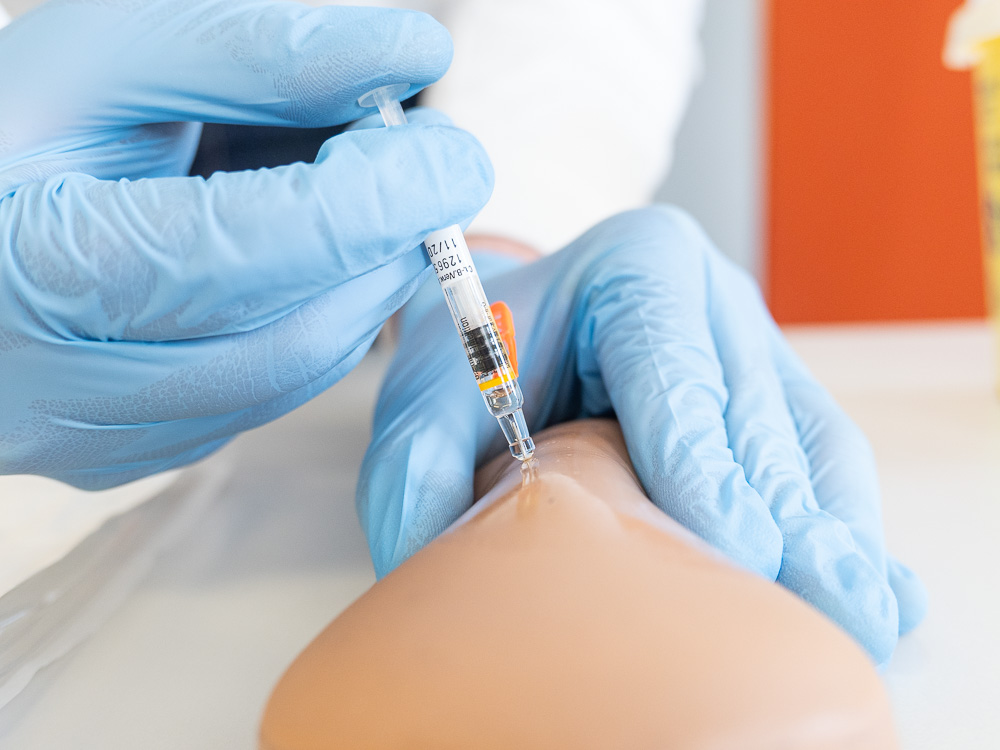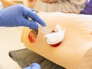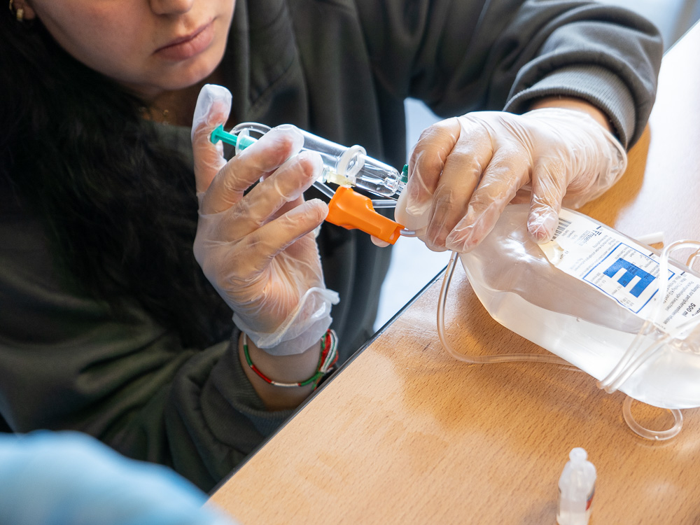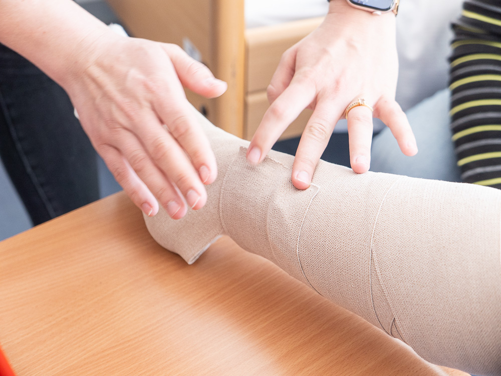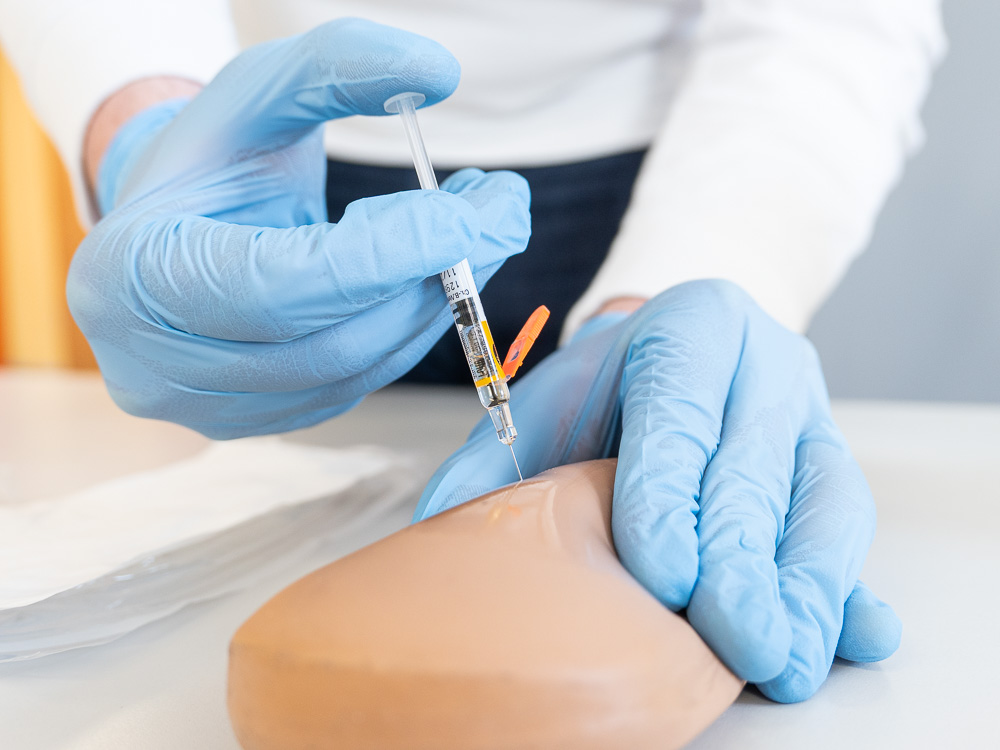Viele Handgriffe, aber auch viel Wissen lässt sich leichter lernen, wenn man die Dinge selbst in die Hand nimmt. Und so gibt es in der Pflegeausbildung immer wieder Tage, an denen in Kleingruppen an unterschiedlichen Stationen gelernt wird, halt den Praxistag. Da werden Beratungsgespräche geprobt, Injektionen verabreicht, Verbände angelegt und mit Stützwäsche hantiert. Sowohl für die neuen als auch für die älteren Schüler:innen ein großer Gewinn.