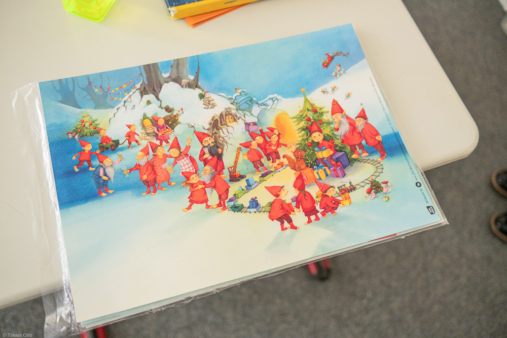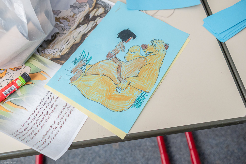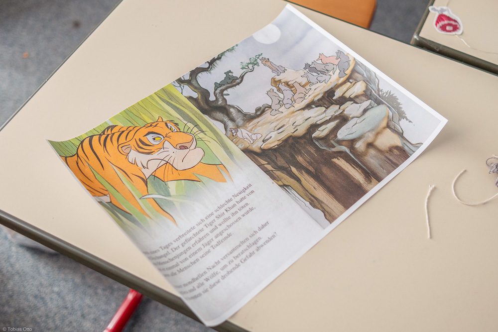 Beim Vorlesen wurden zum Teil auch die schuleigenen Kamishibais benutzt. Das sind kleine Theater, in die Bildkarten eingesteckt werden können, um das Vorlesen visuell zu unterstützen.