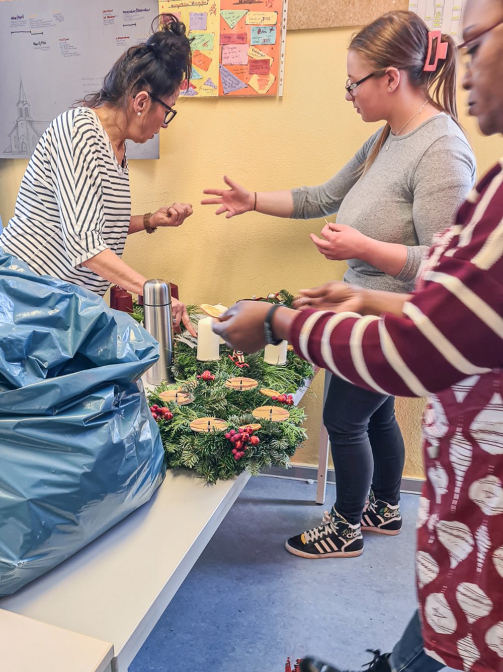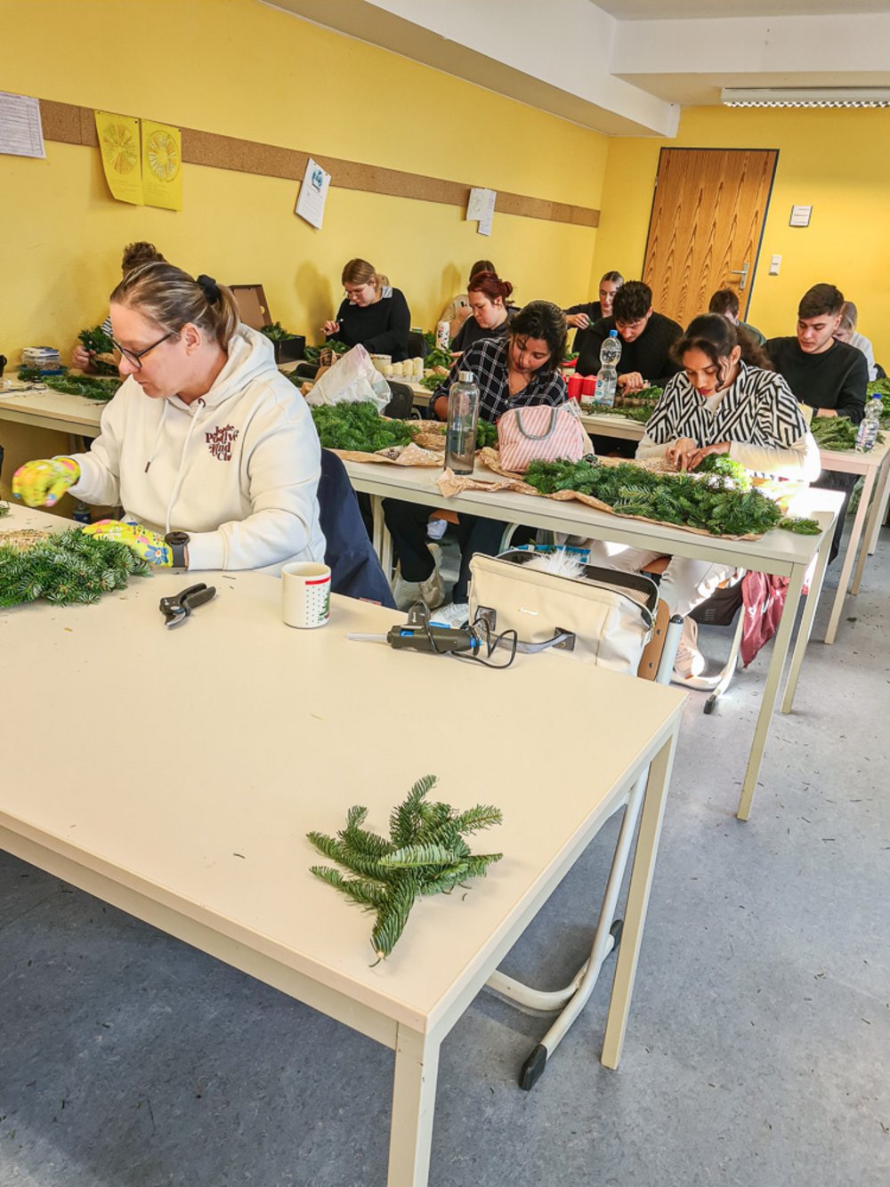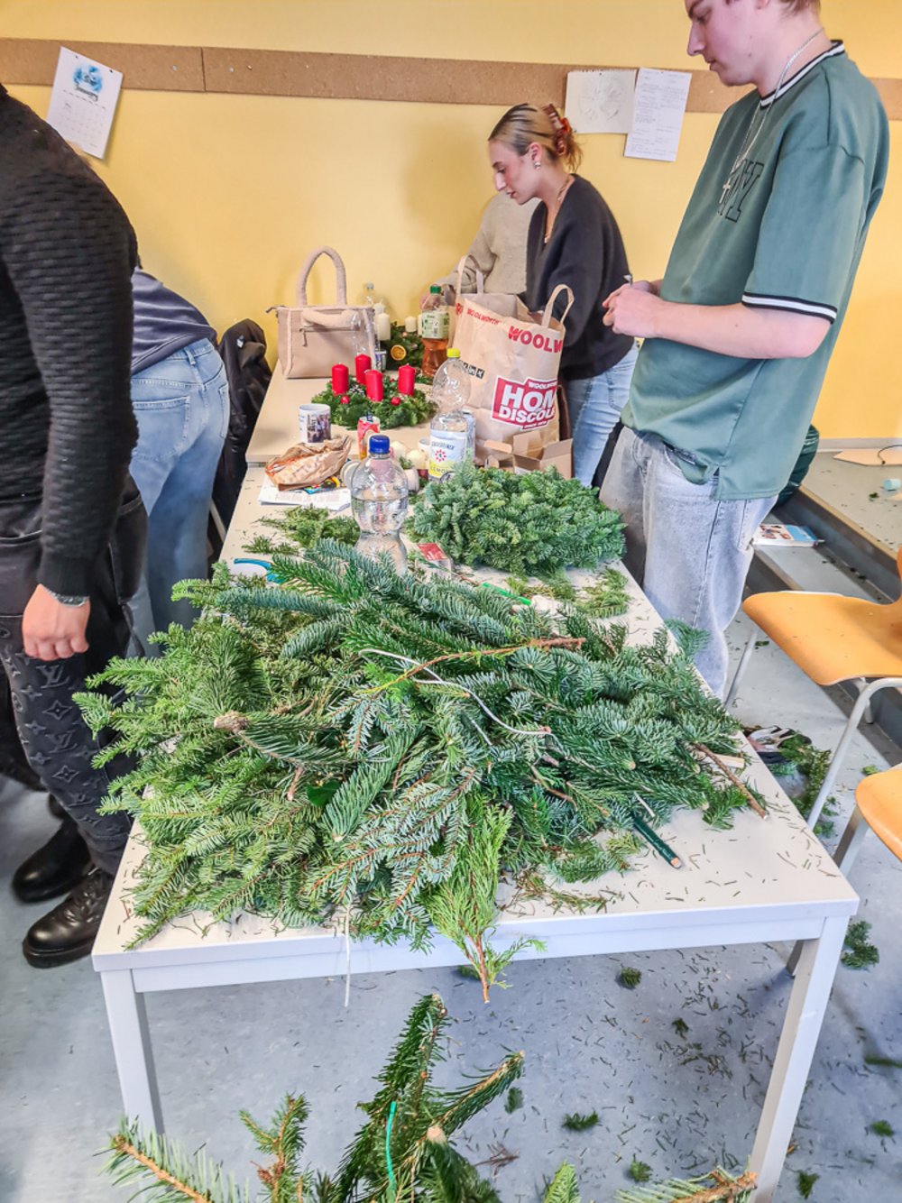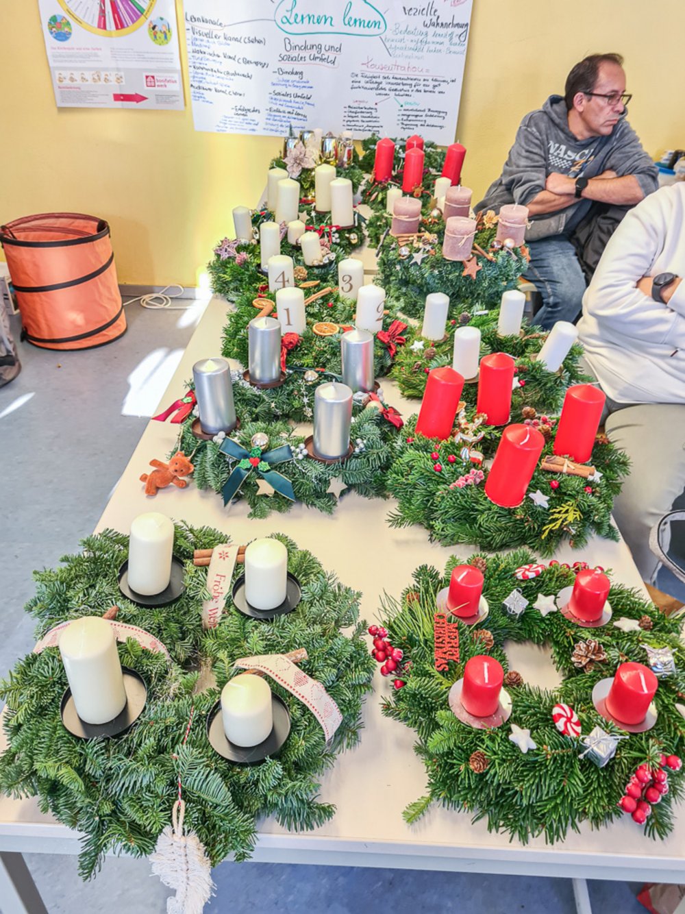Ein Highlight in der Pflegeausbildung ist jedes Jahr wieder das Adventskranzbinden. Tannenzweige, Kerzen, jede Menge Deko und ein paar Heißklebepistolen und schon werden daraus jede Menge individueller Adventskränze. Und auch dieses Jahr lassen sich die Ergebnisse wieder mehr als sehen.