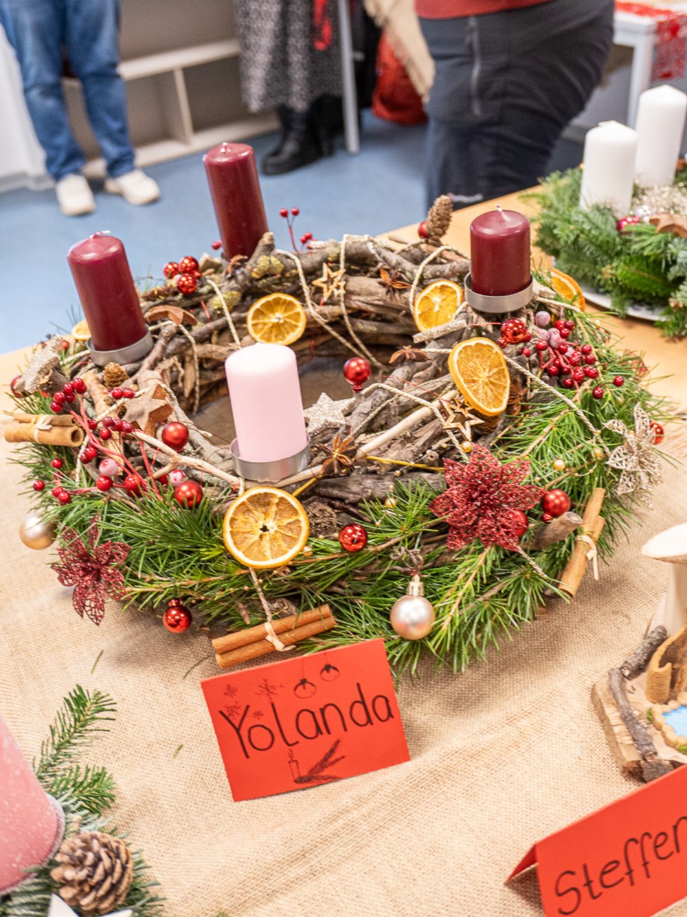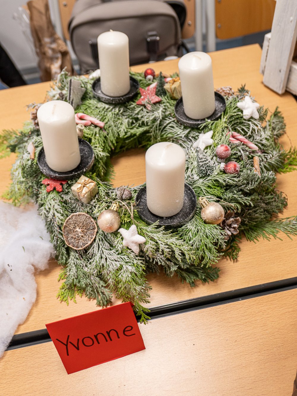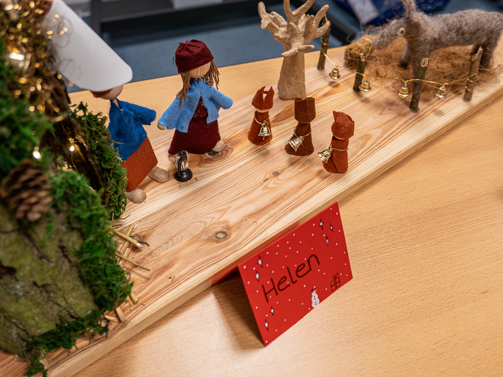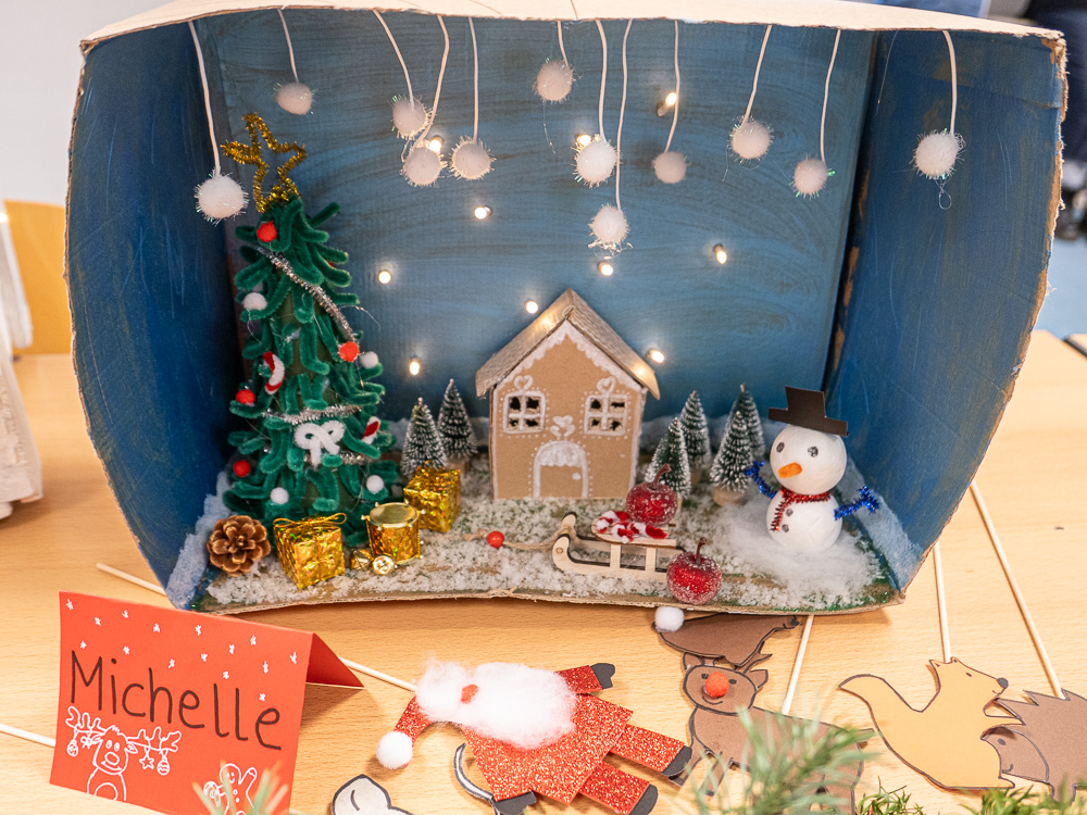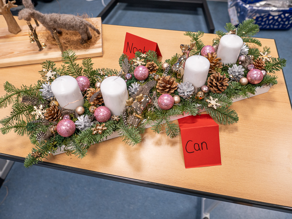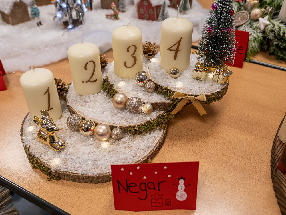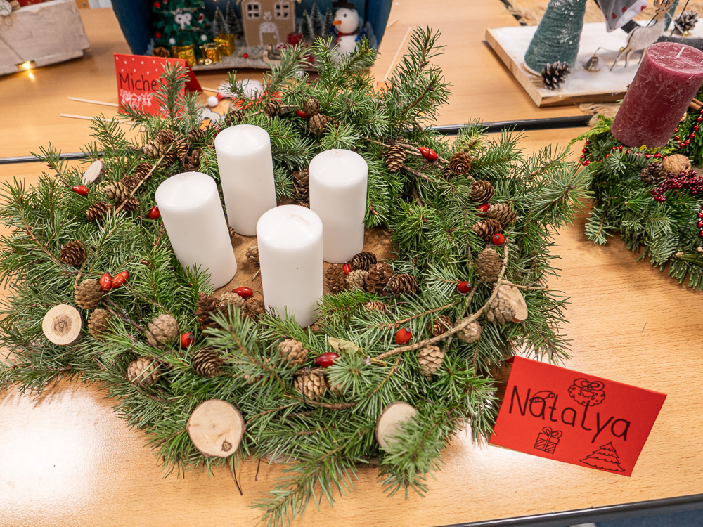 Bei den Erzieher:innen lautete die vorweihnachtliche Aufgabe: Bastle einen Adventskranz, einen Adventskalender oder eine Krippe. Jede(r) Schüler:in durfte sich selbst aussuchen, was von den Dreien es sein sollte. Kurz vor dem ersten Advent präsentierte die ganze Klasse ihre Ergebnisse. Denn selbstverständlich sollen diese Kunstwerke auch tatsächlich im Advent eingesetzt werden. Der Ideenreichtum und die detaillierte Arbeit überzeugte alle, die sich diese vorweihnachtliche Ausstellung angesehen haben. Insofern hat es niemanden verwundert, dass die Noten dafür besonders gut ausgefallen sind.